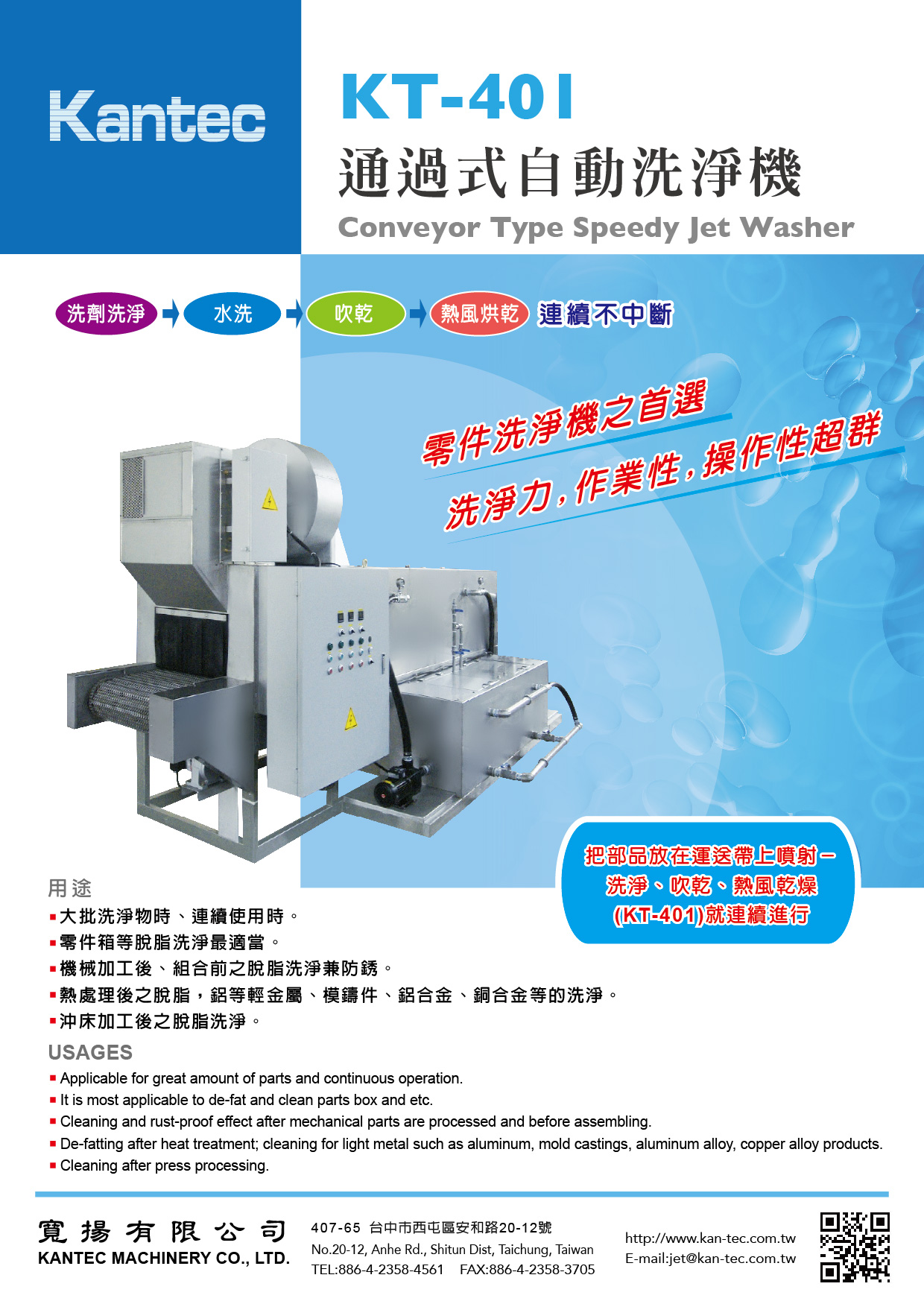 Kantec Machinery Co., Ltd. is a manufacturer of Spray type automatic parts washer, Our products Can be used in the following Situations:Washing to remove grease before paint is applied to small or large parts.