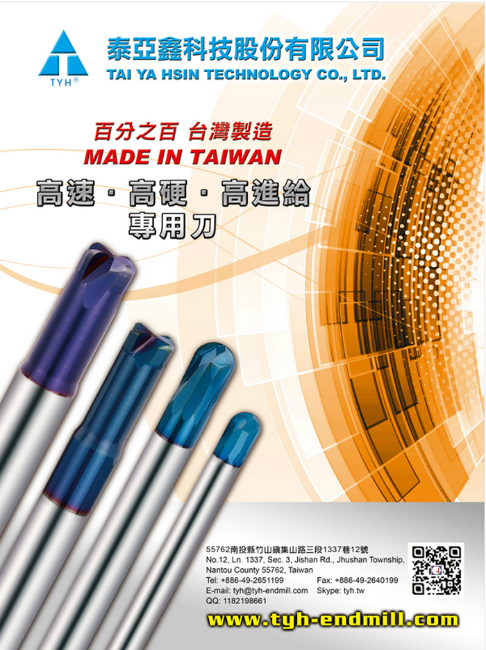 【TYH_泰亞鑫科技股份有限公司】是專業的銑刀製造商,我們專精於製作與經銷鎢鋼銑刀、鑽頭、成型刀、刀桿、筒夾,所生產的刀具適用于切削高硬度、高速度或軟體金屬的加工工件。