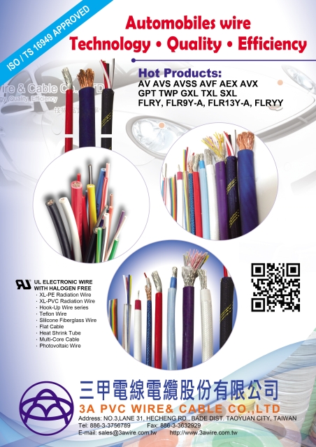 本公司於電線電纜暨汽車用線之專業領域已有30年的經驗,品質廣受市場認同,堪稱國內電線電纜暨汽車用線主要品牌,廣受國內外客戶指定使用,產品行銷遍及全球各地。本廠產品種類繁多,舉凡低鉛低鎘(RoHS)環保電纜、低煙無毒電纜、汽車用線、控制電纜、隔離(遮蔽)電纜、電梯電纜、耐熱耐燃電纜、吊車電纜、電腦電纜、複合電纜...等,廣泛使用於各行各業之機器配線、儀表控制、信號傳輸...等。