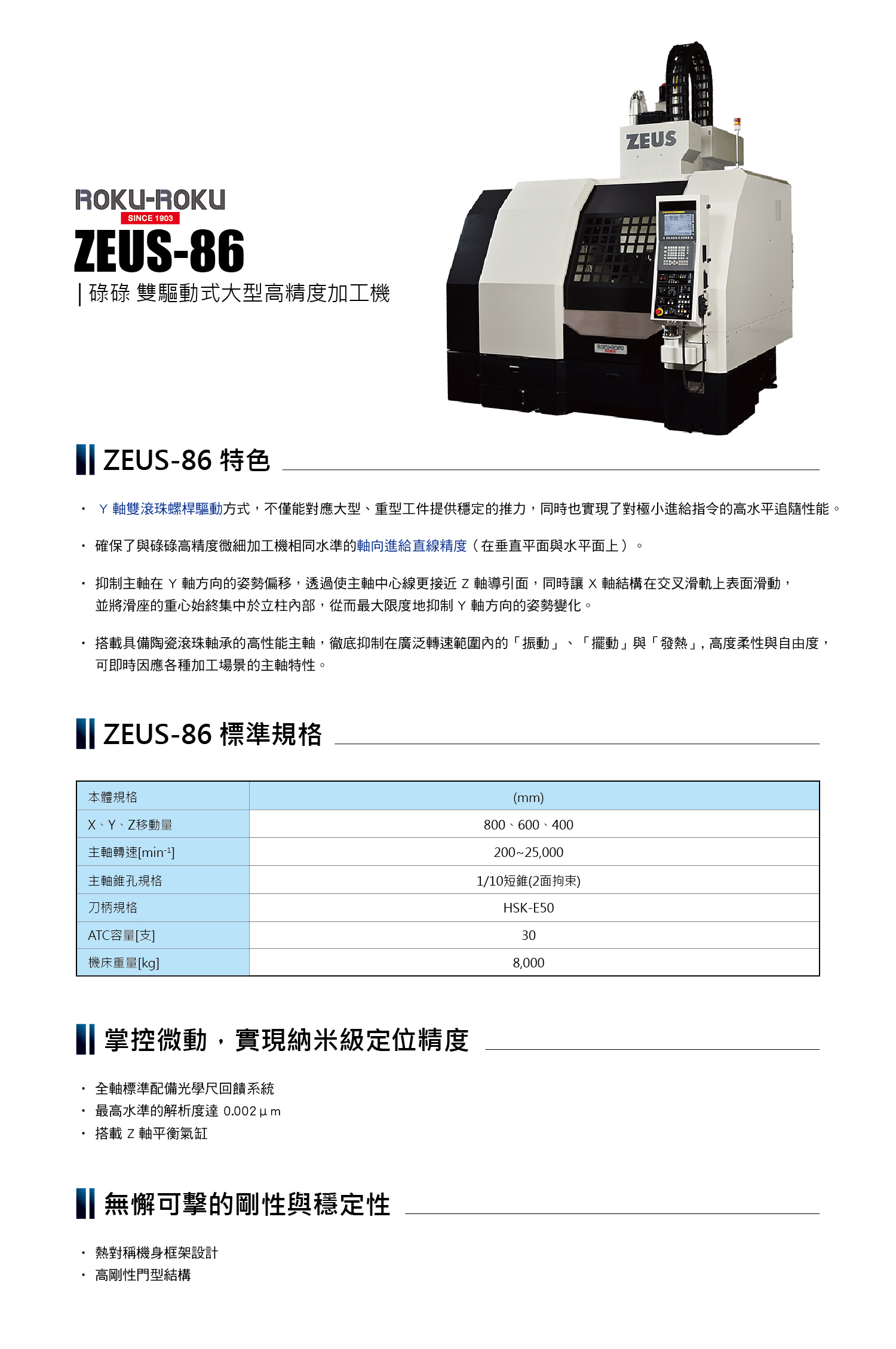 - ROKU-ROKU ZEUS-86 | 碌碌 雙驅動式大型高精度加工機