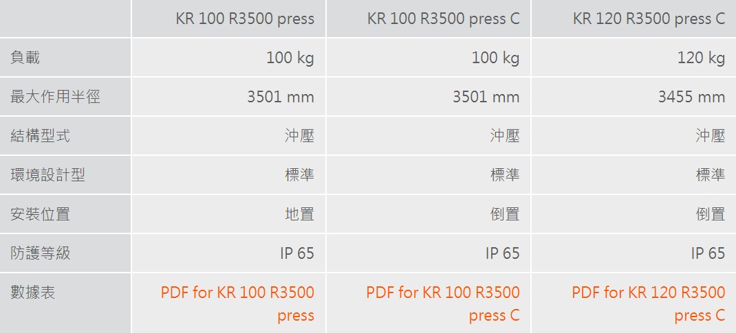 KR QUANTEC 沖壓連線機器人提供地面或天花板安裝兩種機型。